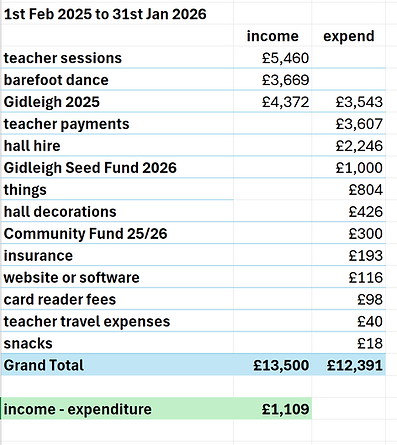 LATEST BAREFOOT DANCE FINANCES - our financial years start 1st Feb and end 31st Jan